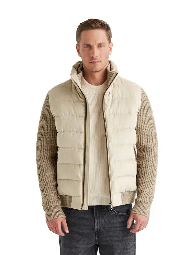 La superficie de microterciopelo beige arena de esta chaqueta híbrida presenta un acabado mate aterciopelado que le confiere un toque elegante a su diseño deportivo. El material transpirable Sorona regula óptimamente la temperatura corporal, mientras que el acabado repelente al agua protege de la llovizna ligera. La combinación de cuerpo acolchado y mangas de punto de lana jaspeada la convierte en una compañera versátil para los días urbanos de otoño. Los ribetes en contraste de las cremalleras y el práctico cuello alto con protección para la barbilla realzan su sofisticada funcionalidad. MILESTONE combina la artesanía bávara con innovadoras tecnologías de materiales desde 1994: esta chaqueta híbrida ejemplifica la experiencia de la marca en prendas de abrigo modernas. Ideal para las estaciones de entretiempo, cuando las mañanas aún son frescas y el sol brilla al mediodía.