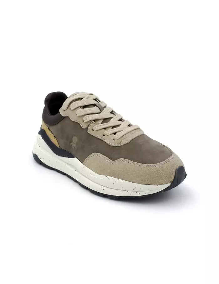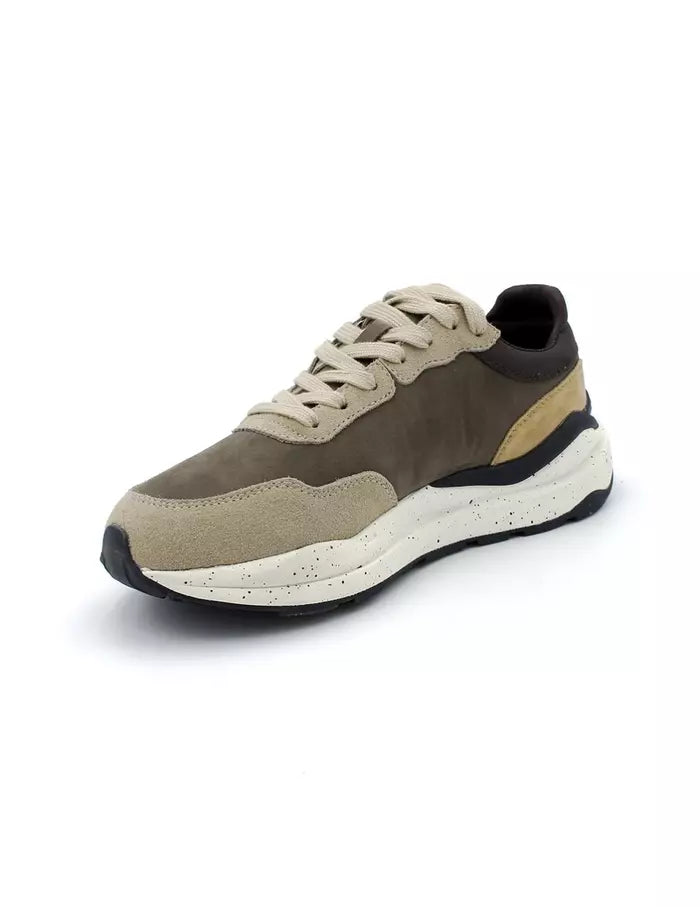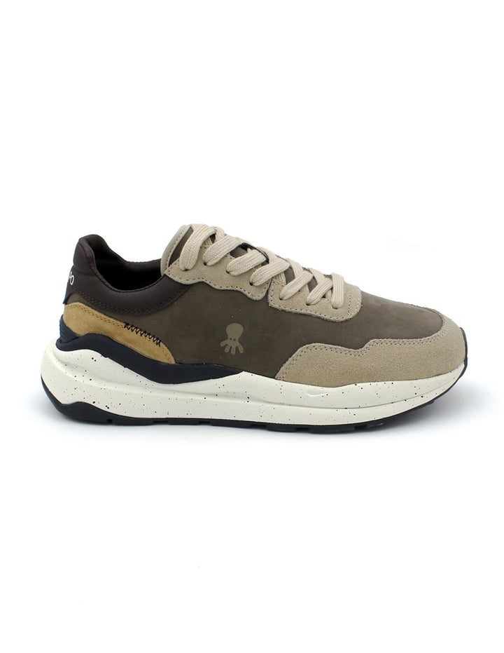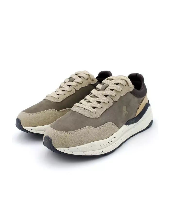 Zapatilla con suela reciclada para hombre. Lengüeta envivada a contraste. Grabado en lengüeta. Cordón plano de algodón con herretes engomados. Lengueta envivada a contraste. Grabado de elPulpo en el lateral a contraste. Suela reciclada moteada. Talón en piel con lettering a contraste. Composición: Parte superior: 95% piel vacuno 5% otros materiales. Forro: 100% textil. Suela: 100% goma.